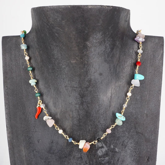 Rosario con pietre naturali multicolor e cornetto rosso