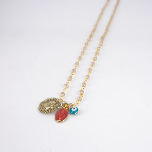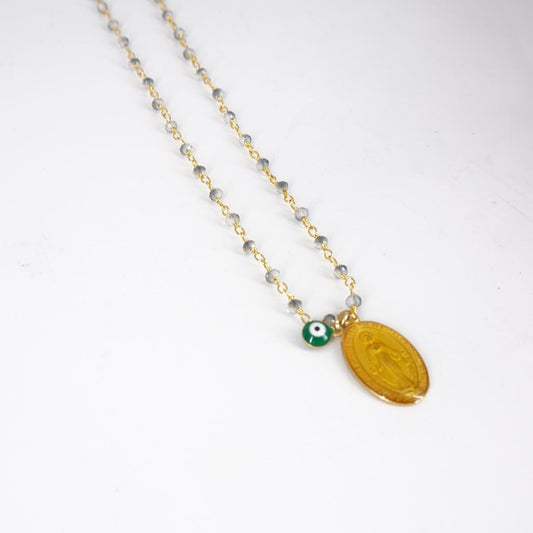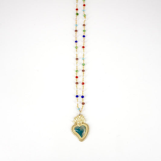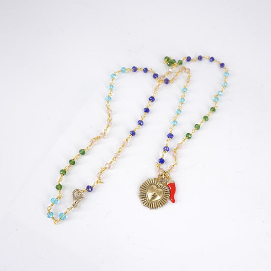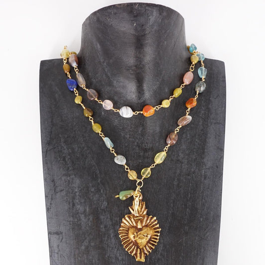 Rosario lungo con EX VOTO e pietre MULTICOLOR