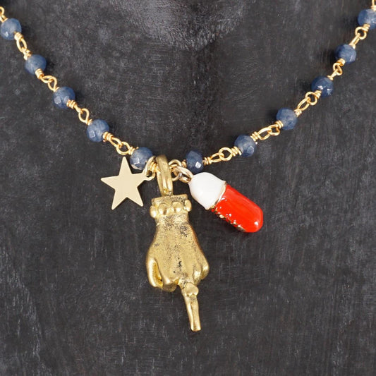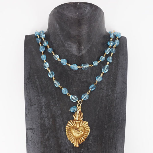 Rosario lungo con EX VOTO e pietre AZZURRE