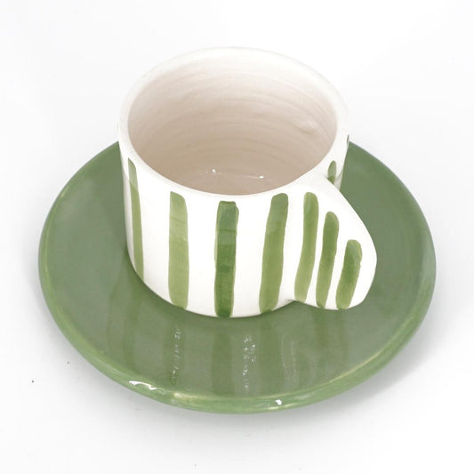 TAZZINA CAFFè CON PIATTINO RIGHE SALVIA