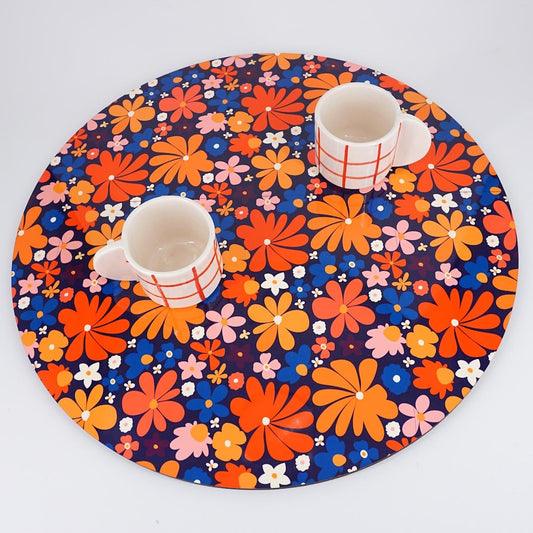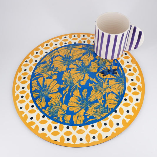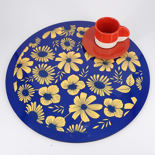 SOTTOPIATTO TONDO FIORI GIALLI FONDO BLU