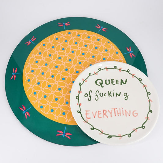 SOTTOPIATTO TONDO FIORI GIALLI E LIBELLULA