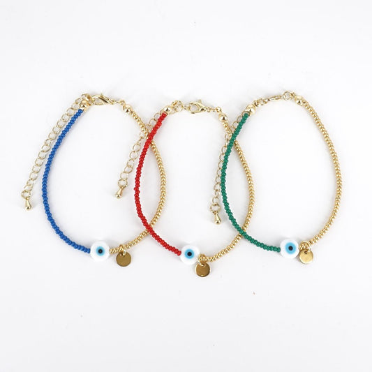 BRACCIALE OCCHIO PERLINE ORO E ROSSO