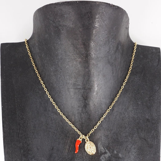 COLLANA CATENINA MADONNINA ROSSA E CORNETTO
