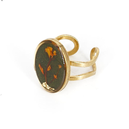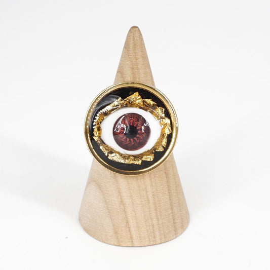 Anello occhio big Foglia d'oro marrone