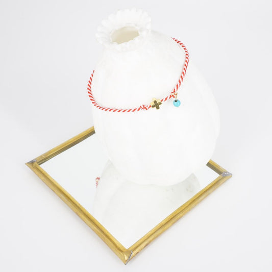 BRACCIALE CORDINO PIETRA AZZURRA E CROCE