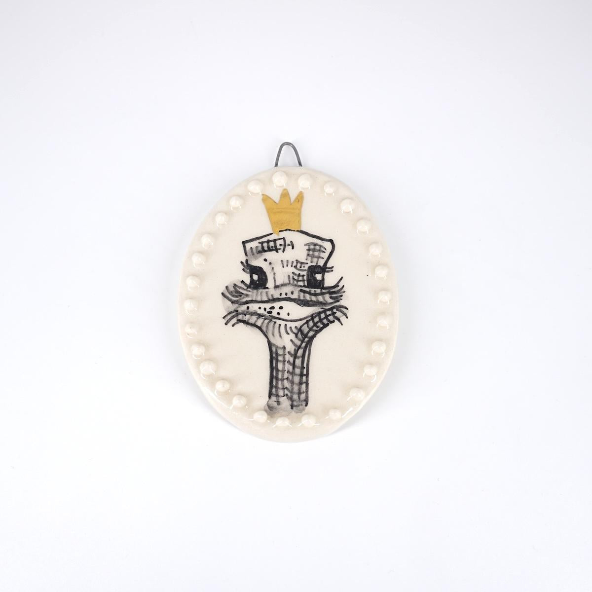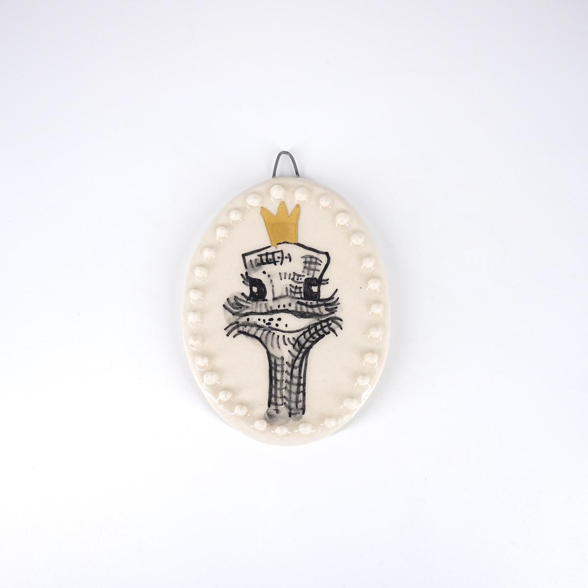AUTRUCHE ovale avec couronne fond blanc avec bulles