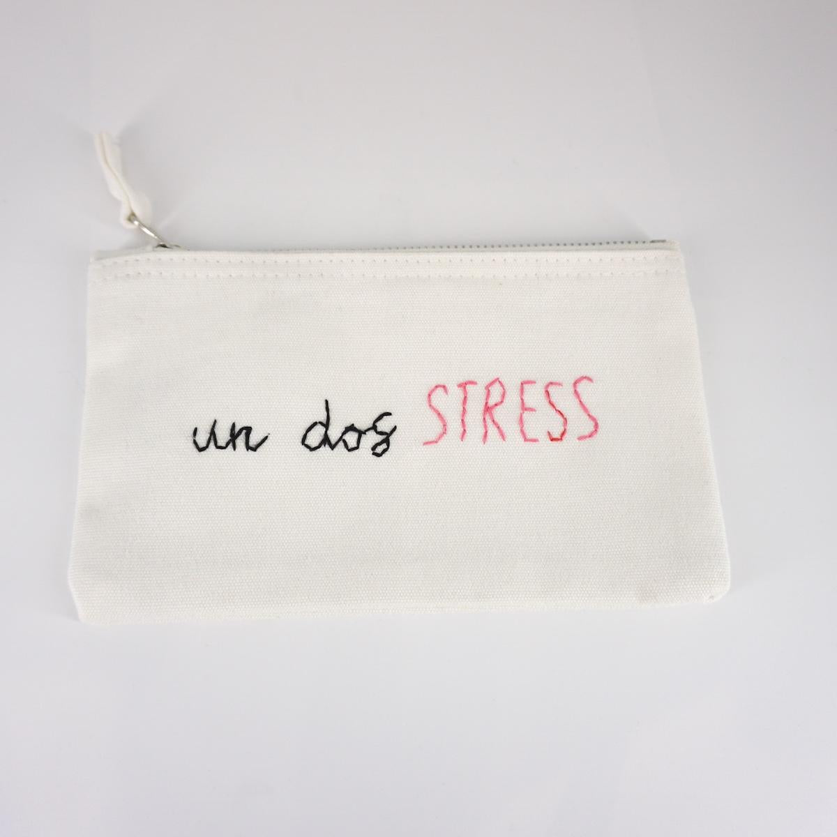 Un iconico ricamo impreziosisce questa pratica bustina in cotone bianco. Un divertente promemoria da portare sempre con sé o per un regalo decisamente unico.