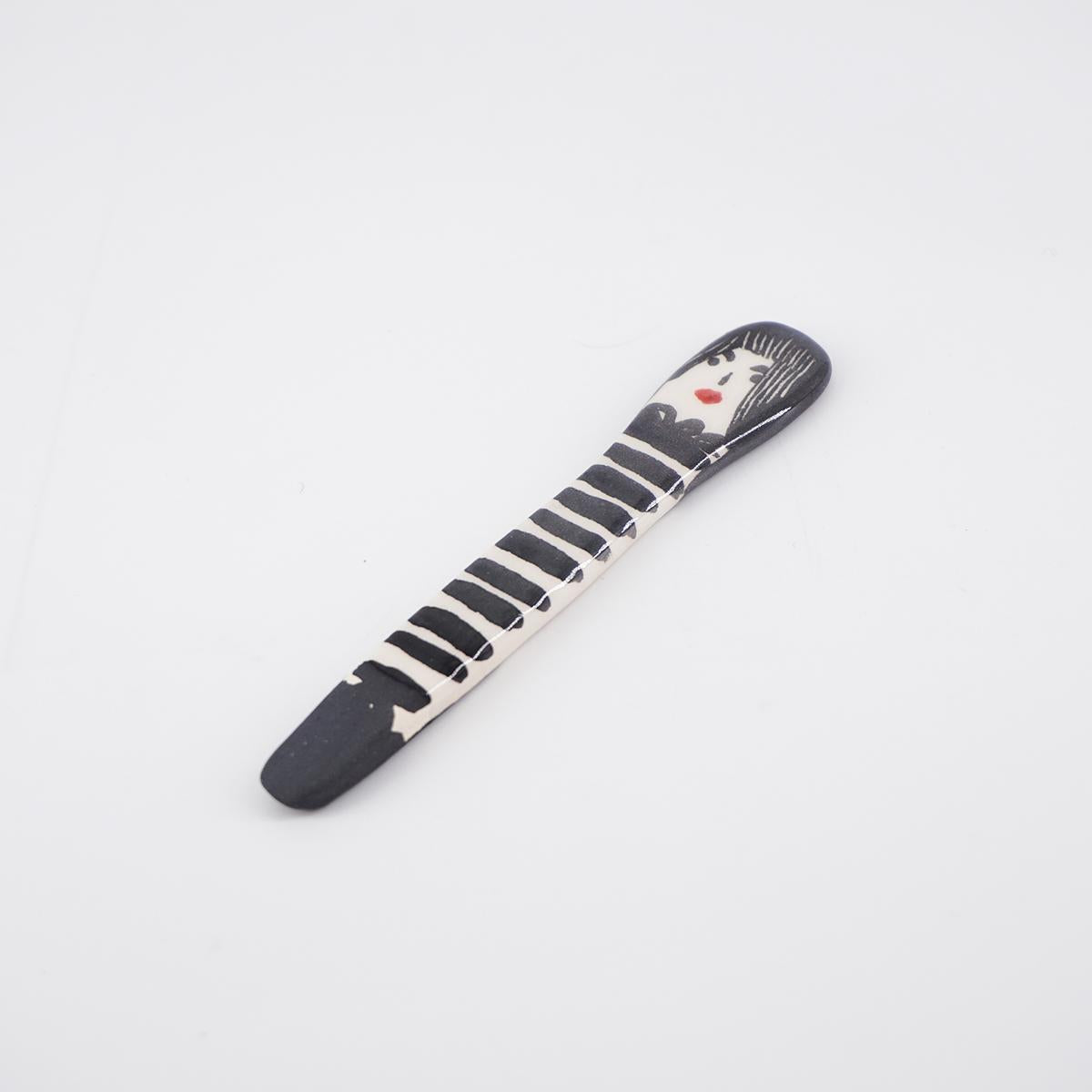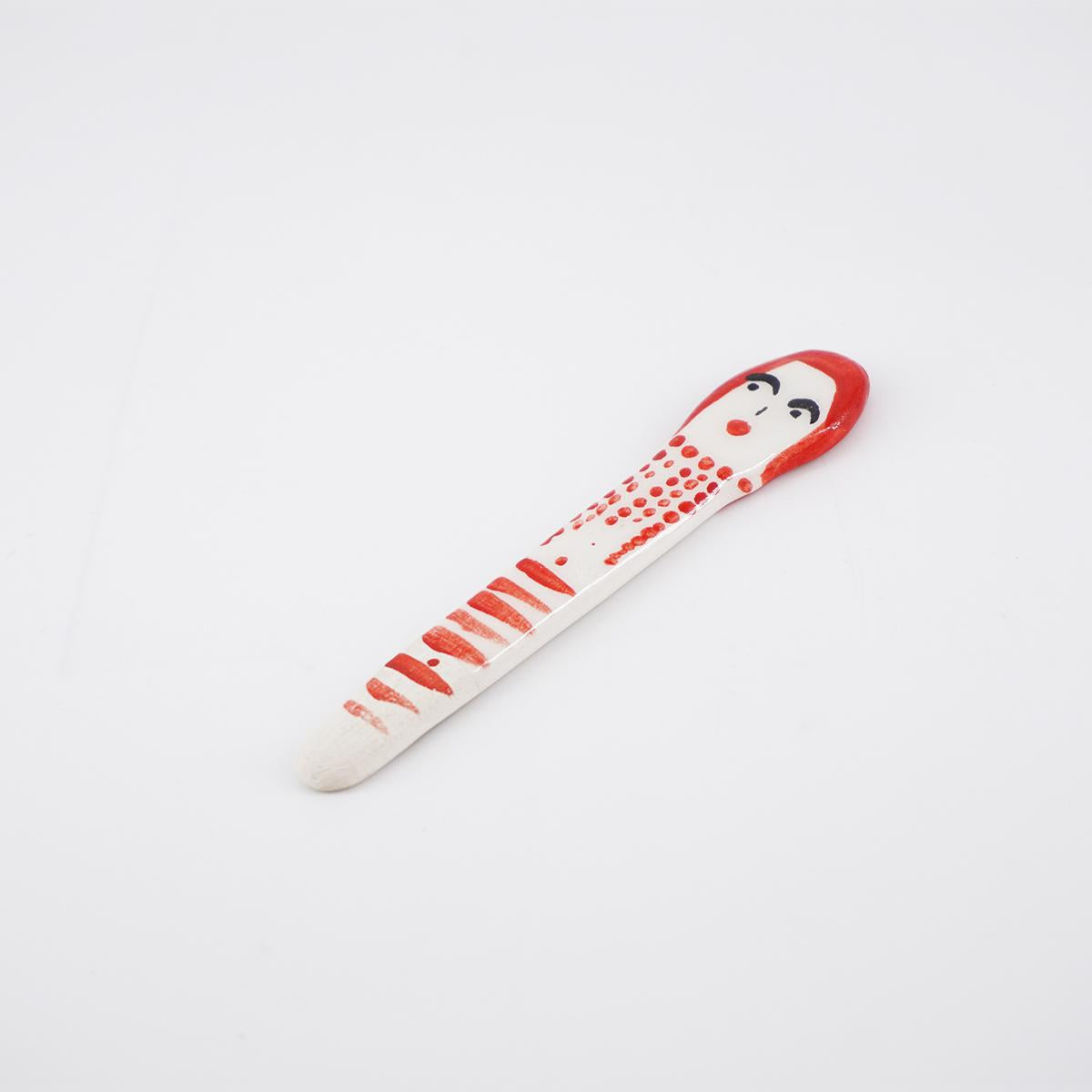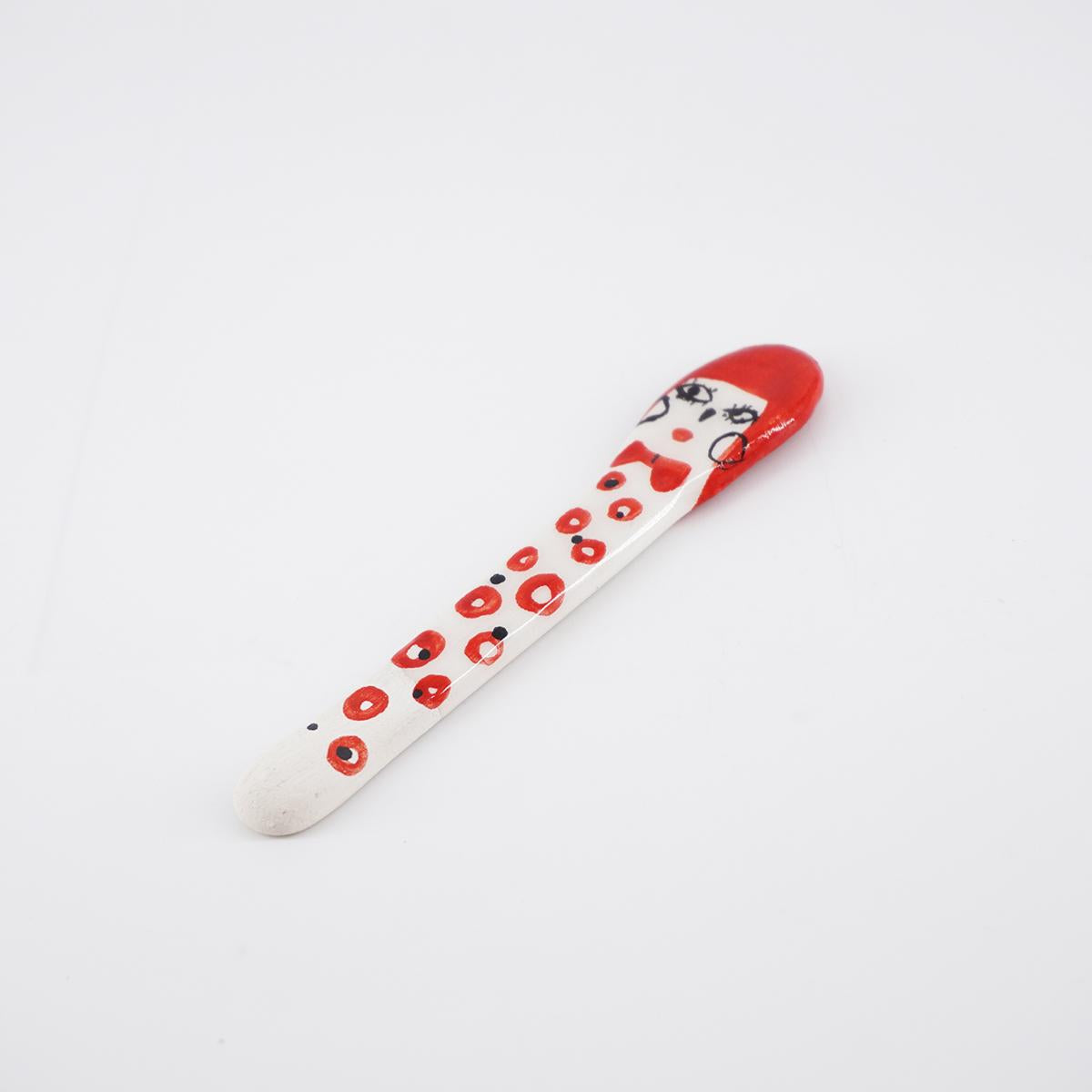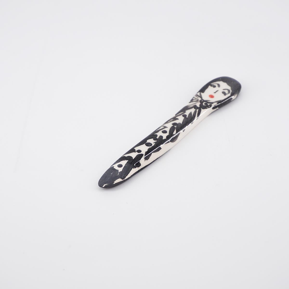 Questa donnina finemente decorata è pronta a tuffarsi nella vostra bevanda calda mattutina! Ogni pezzo è unico poichè realizzato interamente a mano in ceramica.