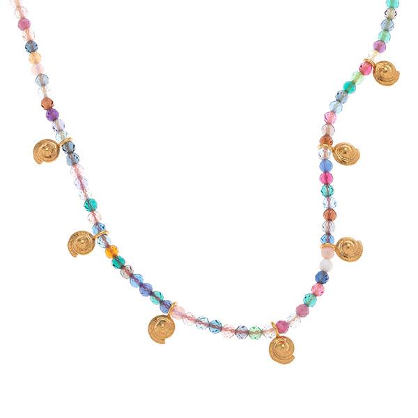 Materiale: Collana con perline multicolor e pendenti in argento placcato oro.