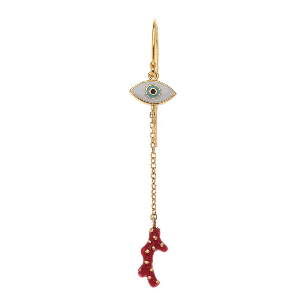 L'occhietto simbolo di protezione e fortuna è il protagonista di questo mono orecchino. Il bijoux perfetto per iniziare a decorare il vostro orecchio