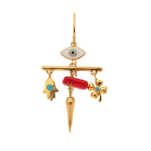 L'occhietto simbolo di protezione e fortuna è il protagonista di questo mono orecchino. Il bijoux perfetto per iniziare a decorare il vostro orecchio