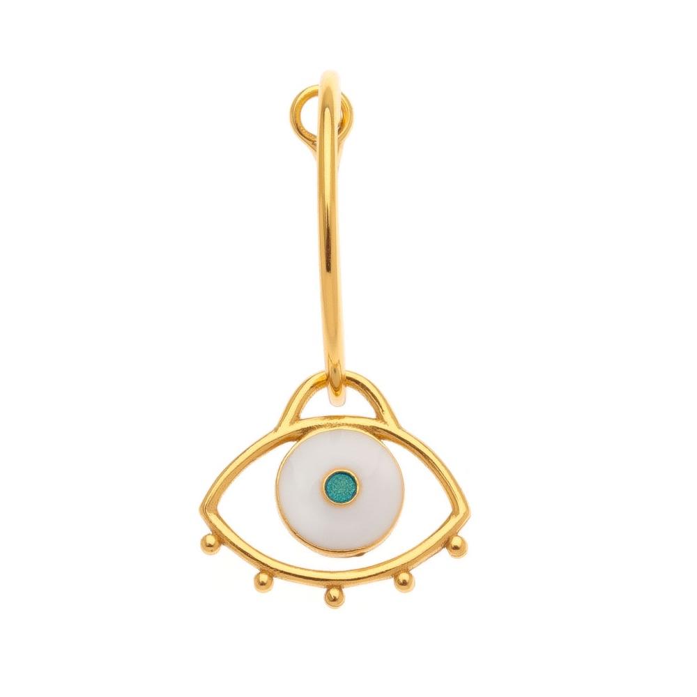 L'occhietto simbolo di protezione e fortuna è il protagonista di questo mono orecchino. Il bijoux perfetto per iniziare a decorare il vostro orecchio con un divertente mix and match!
