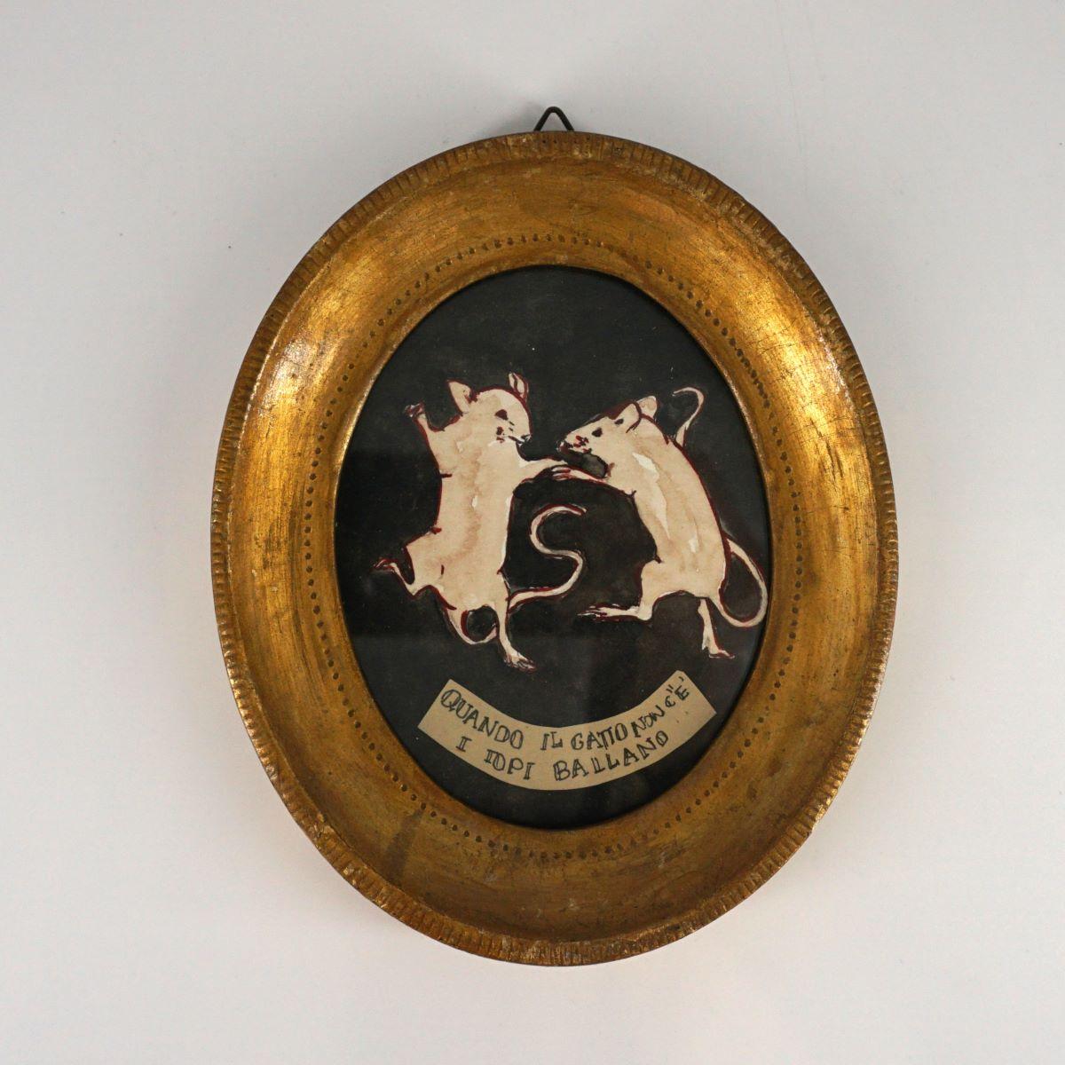 Quadretto QUANDO IL GATTO NON C'E' I TOPI BALLANO OVALE PICCOLO
