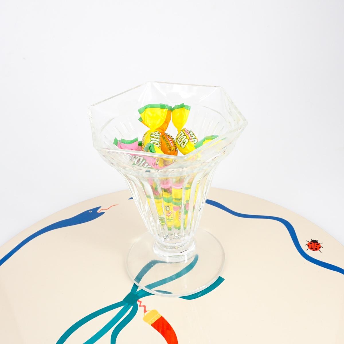 Coppa da gelato dal fascino retrò, con linee delicate e dettagli senza tempo. Ideale per creare atmosfere dolci e nostalgiche a ogni dessert.