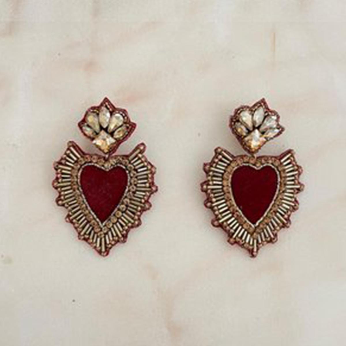 Orecchini cuore con raggi rosso