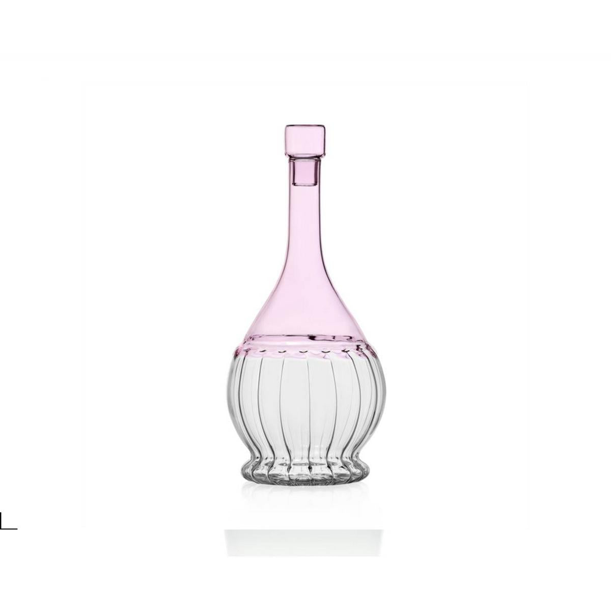 Un fiasco dal design super moderno che trae ispirazione dalle storiche damigiane per il vino. La tinta delicata del vetro permette di apprezzare a pieno le sfumature del suo prezioso contenuto. Salute! Fatto a mano e modellato a lume.
