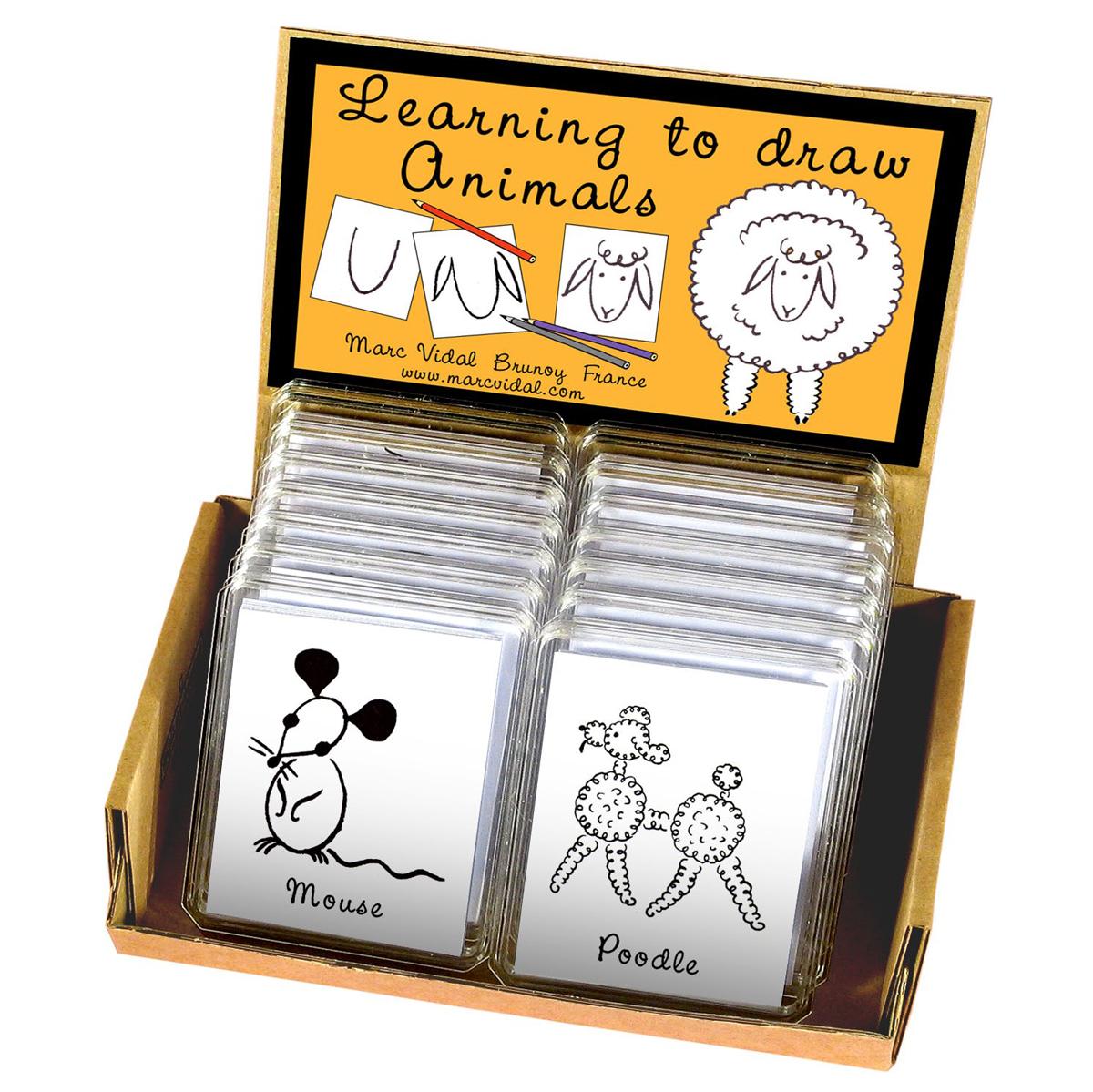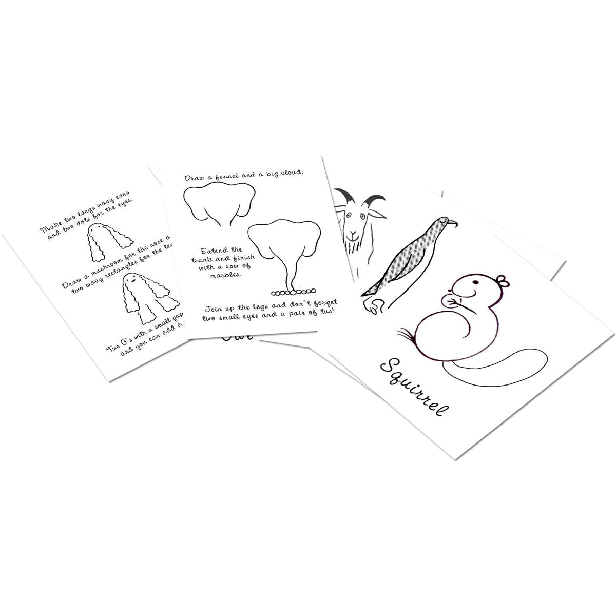 Una piccola scatolina contenente 18 modelli di animali facili da disegnare attraverso i passaggi illustrati sul retro di ogni cartolina. Ora non vi resta che prendere una matita e provare!