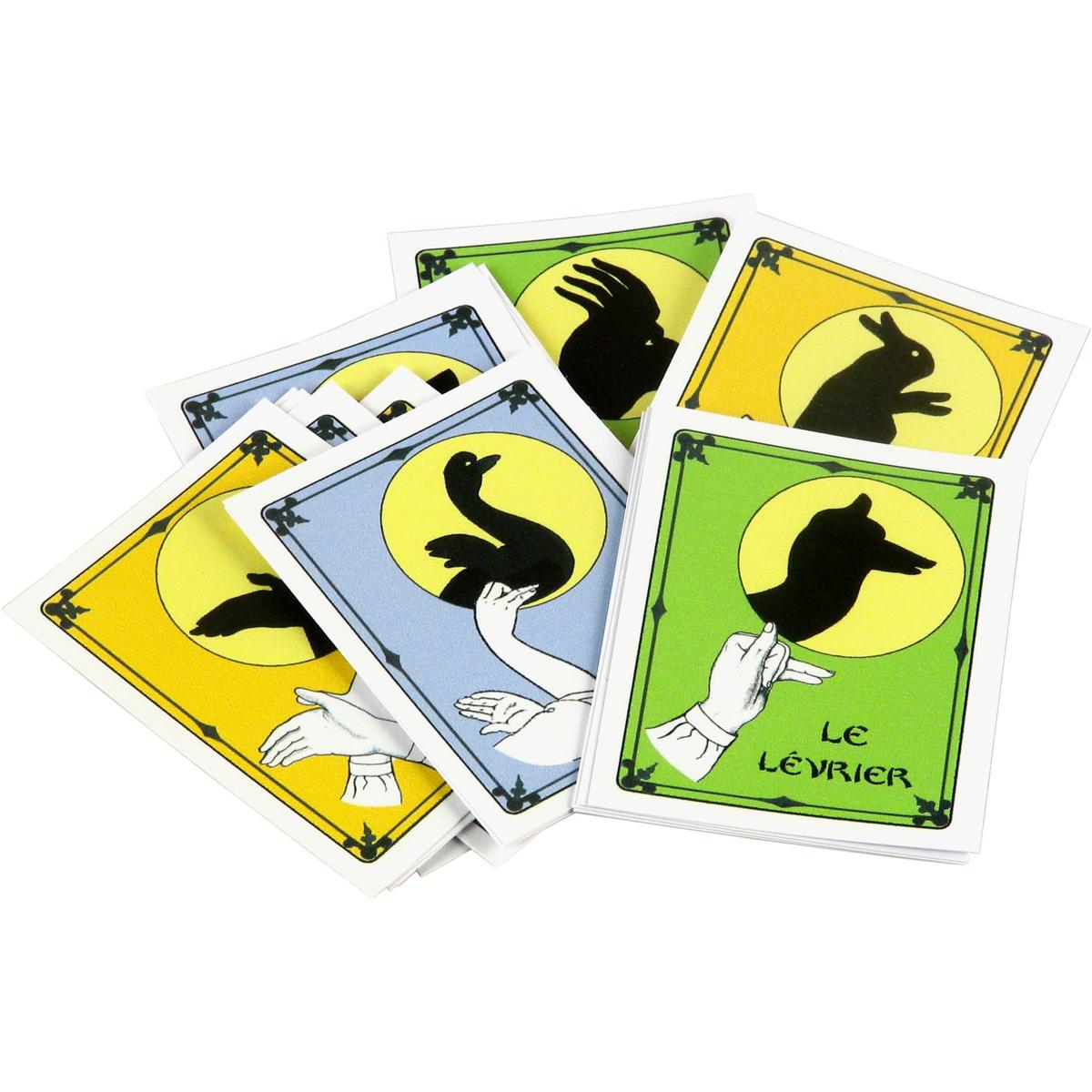 Una piccola scatolina contenente 18 modelli di ombre cinesi facili da realizzare seguendo la figura illustrata. Ora non vi resta che creare il vostro spettacolo personale!