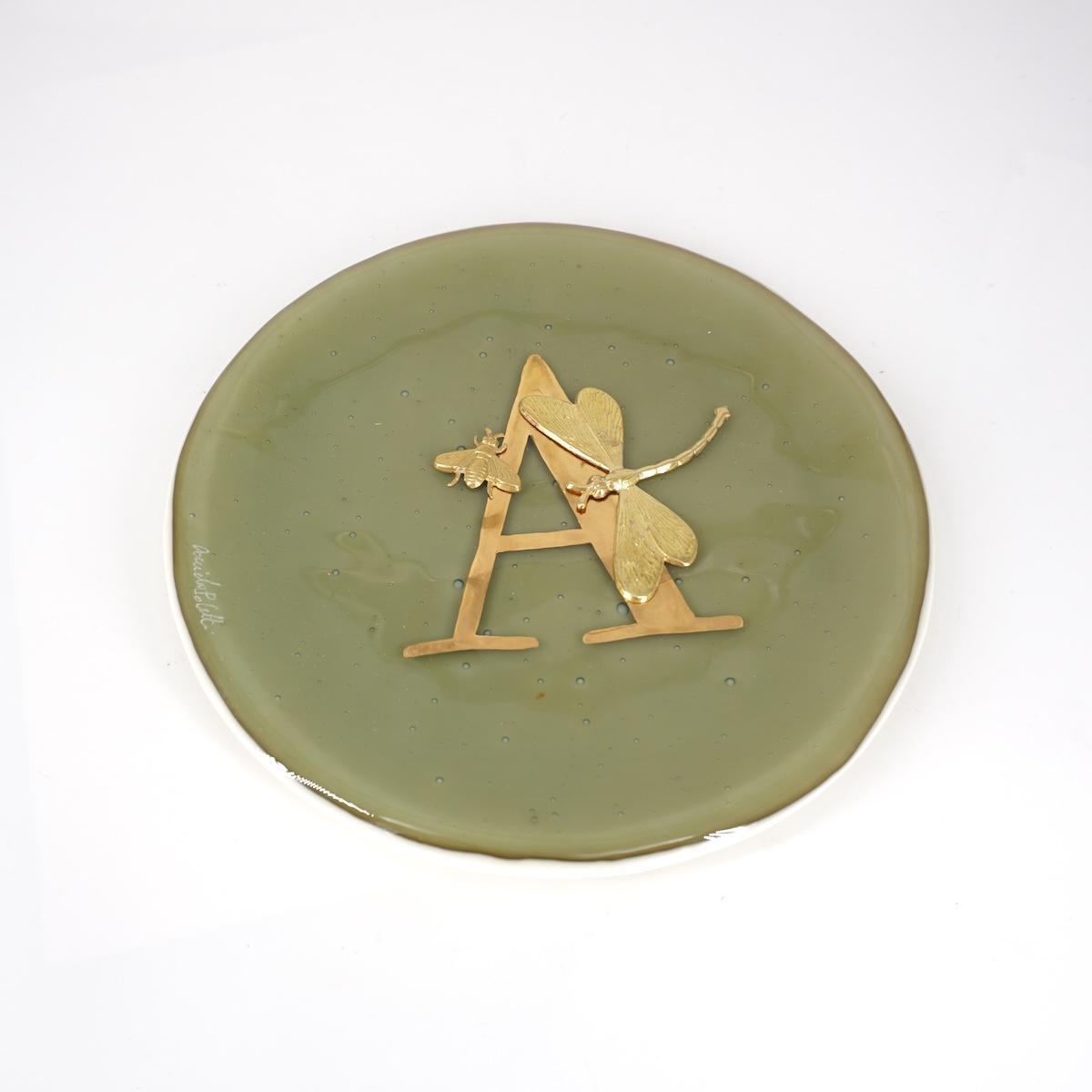 Eleganza e personalità in un piattino di vetro di Murano. Con l'iniziale in oro e l'applique in ottone, questi piattini sono un vero e proprio gioiello artigianale.
