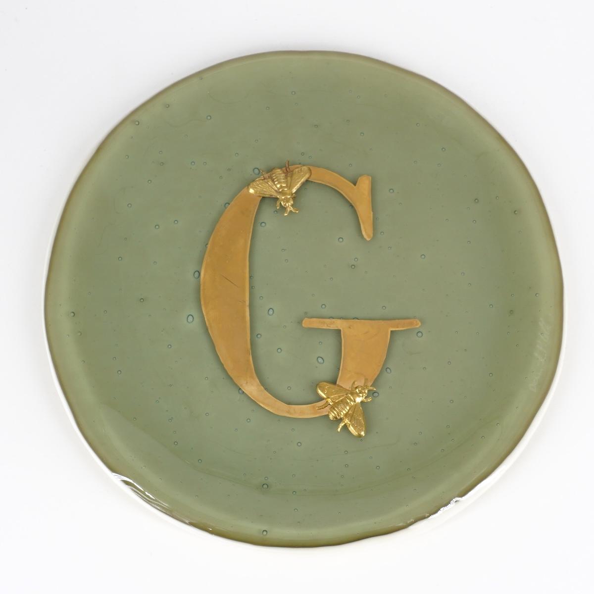 Piatto lettera e charm G SABBIA