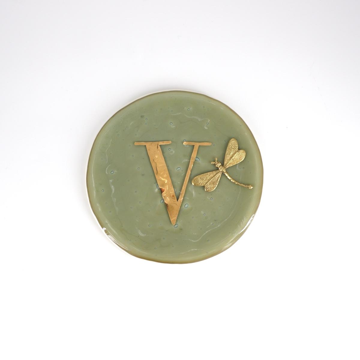 Eleganza e personalità in un piattino di vetro di Murano. Con l'iniziale in oro e l'applique in ottone, questi piattini sono un vero e proprio gioiello artigianale.