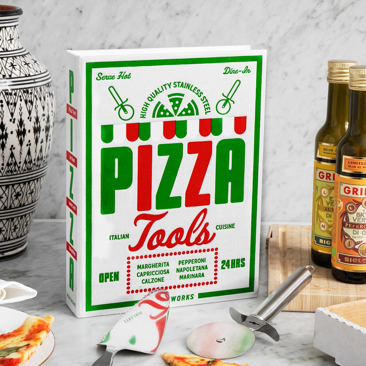 Scopri il nostro Kit per la Pizza, sapientemente camuffato da elegante scatola a libro. È la perfetta fusione tra estetica e funzionalità. Aprendolo, scoprirai tutti gli strumenti essenziali per un'avventura da pizzaiolo di successo. Tutti gli strumenti sono realizzati in acciaio inossidabile e sono lavabili in lavastoviglie.