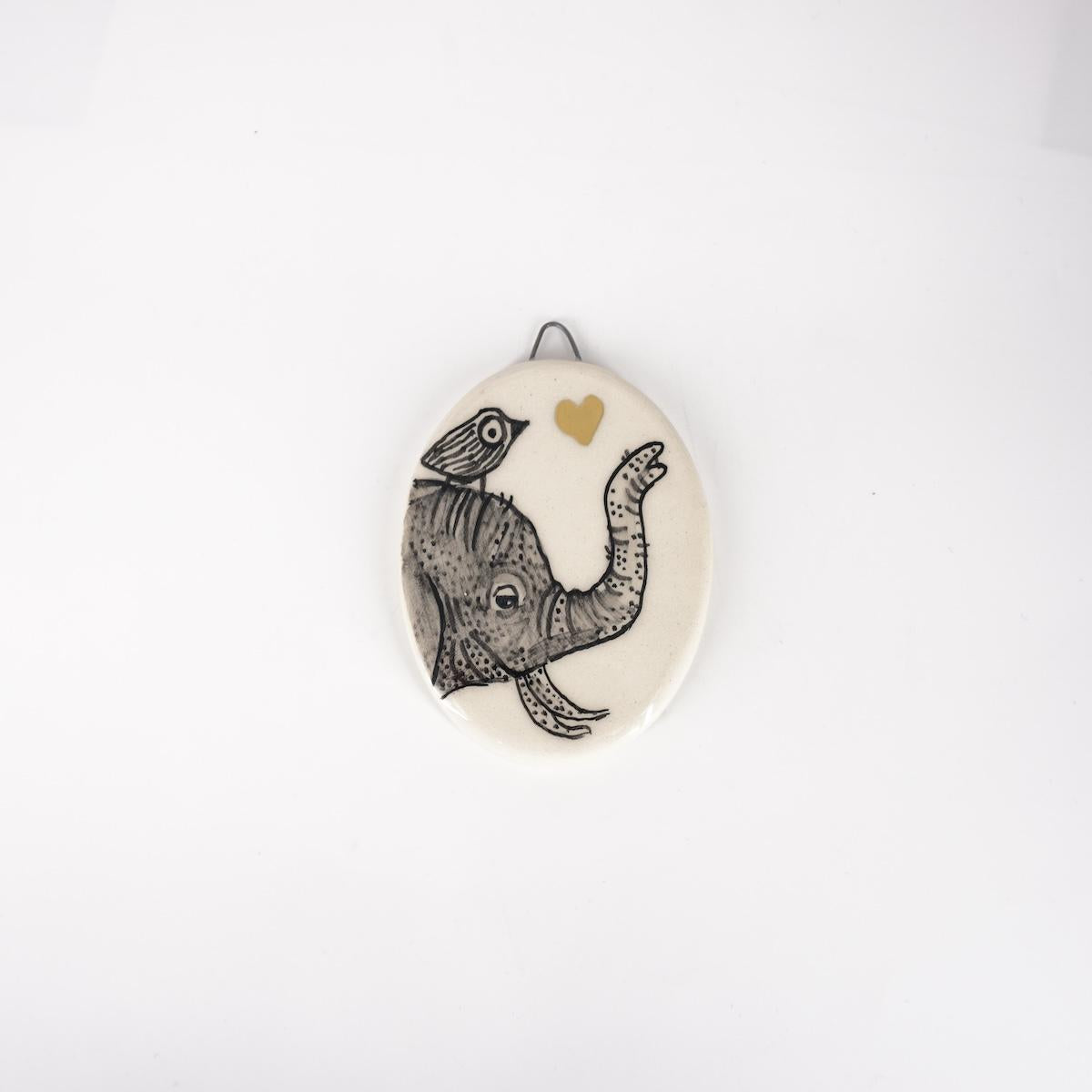 Ovalino ELEFANTE con uccellino fondo bianco liscio