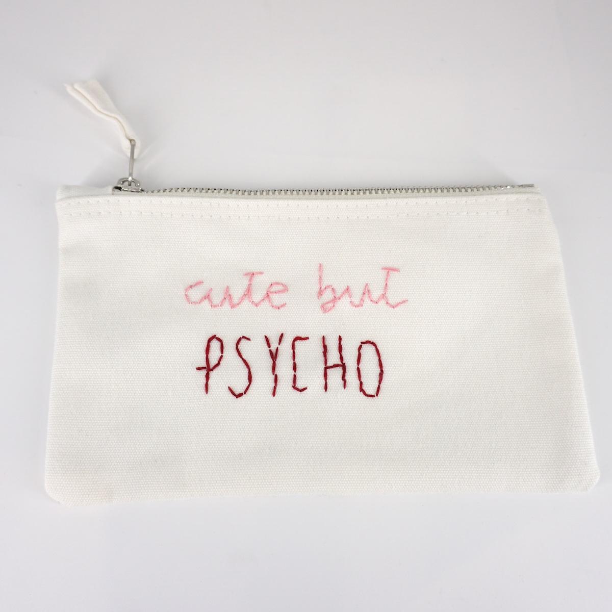 Un iconico ricamo impreziosisce questa pratica bustina in cotone bianco. Un divertente promemoria da portare sempre con sé o per un regalo decisamente unico.