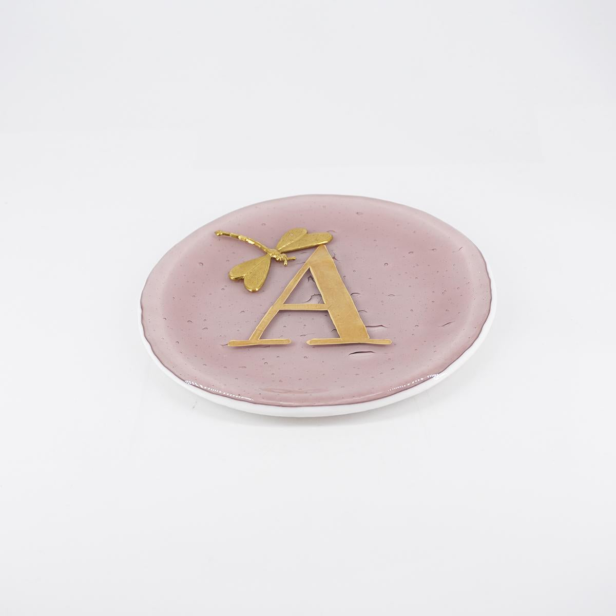 Piatto lettera e charm A ROSA