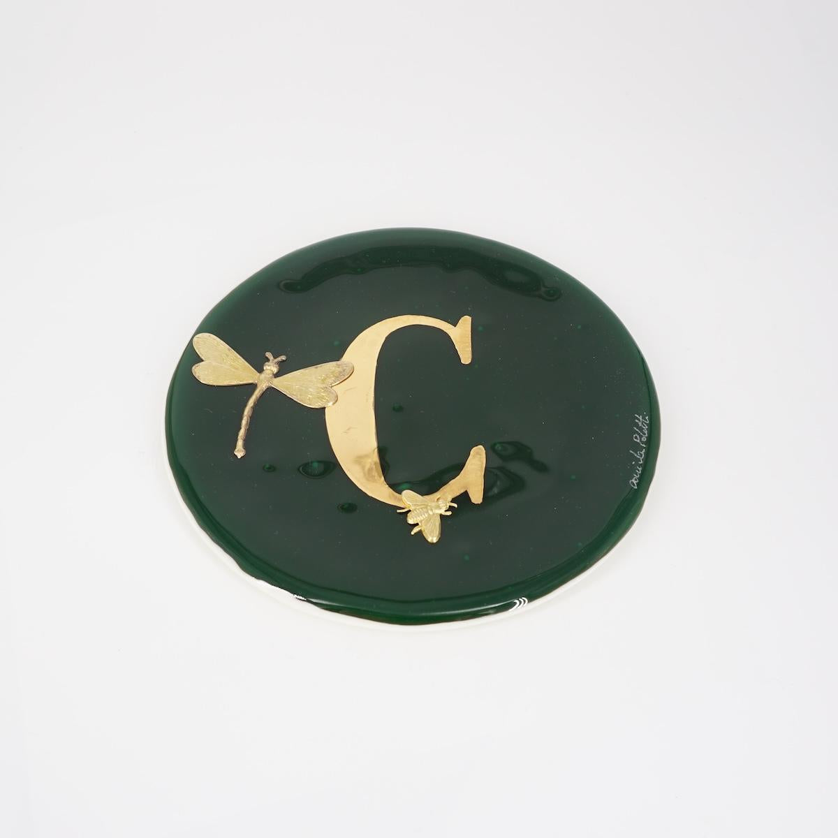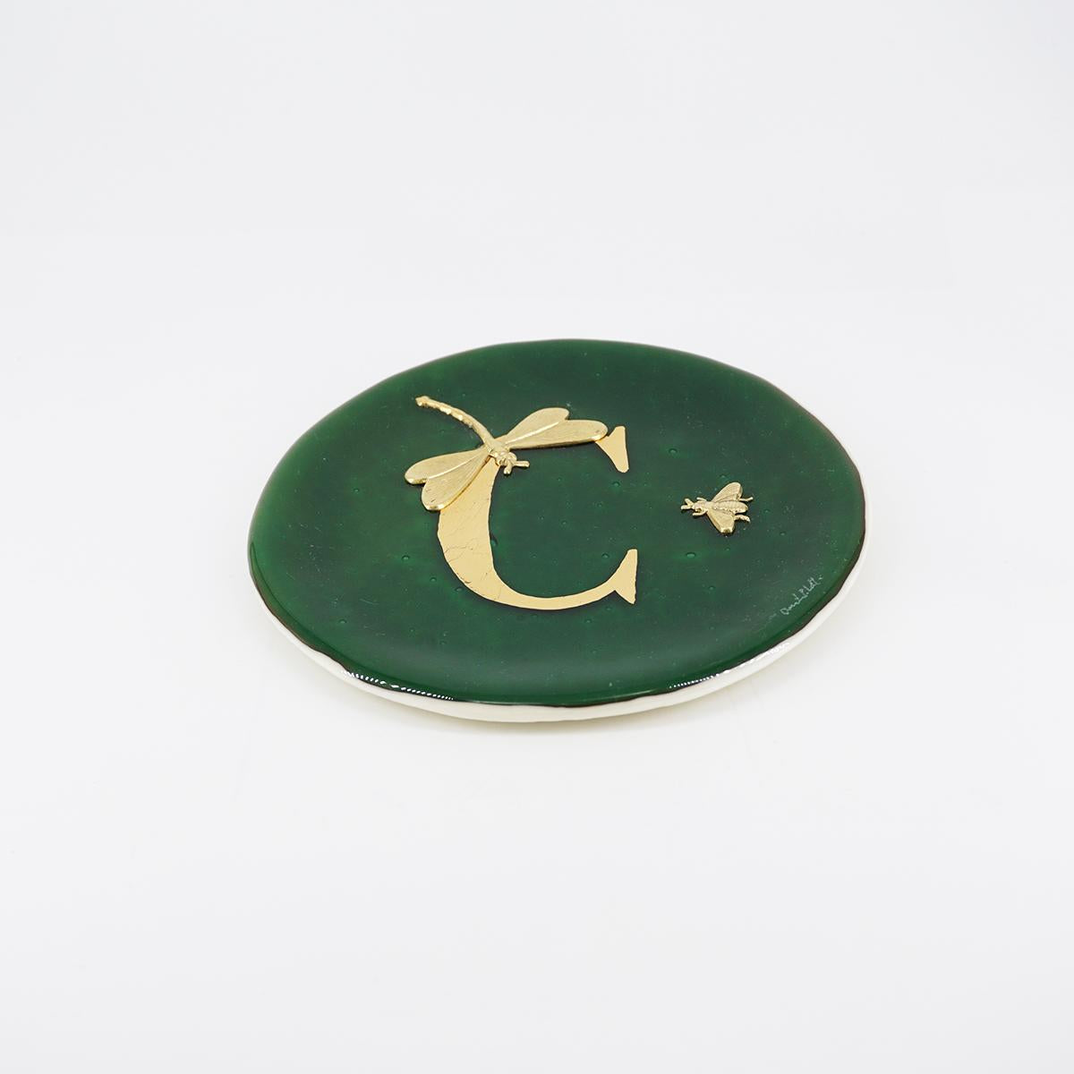 Eleganza e personalità in un piattino di vetro di Murano. Con l'iniziale in oro e l'applique in ottone, questi piattini sono un vero e proprio gioiello artigianale.