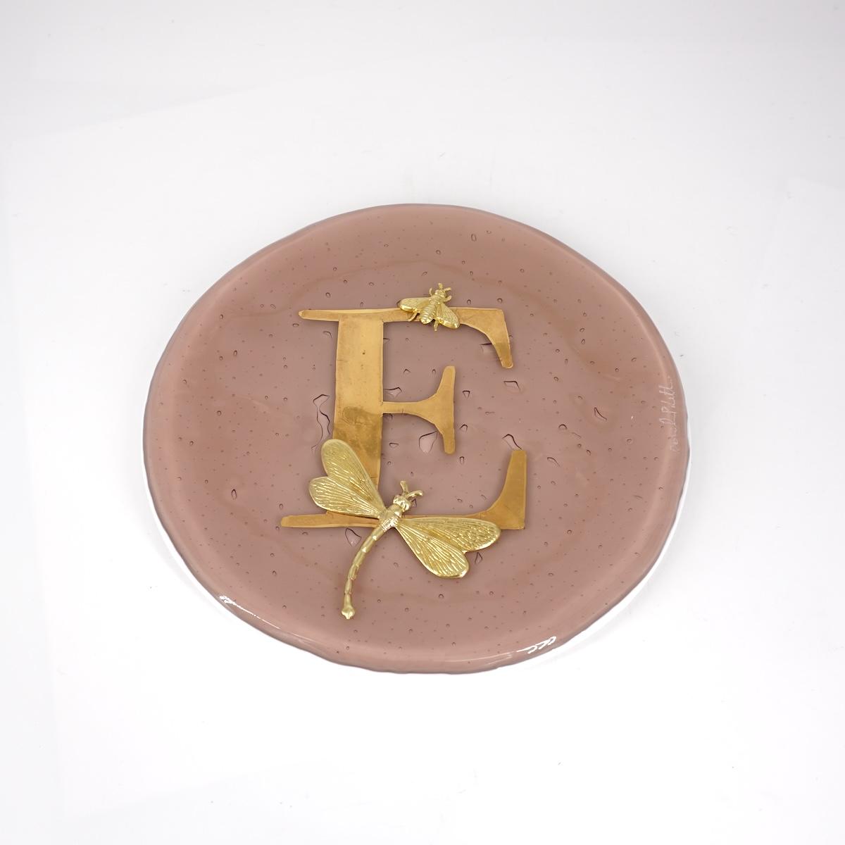Piatto lettera e charm E ROSA