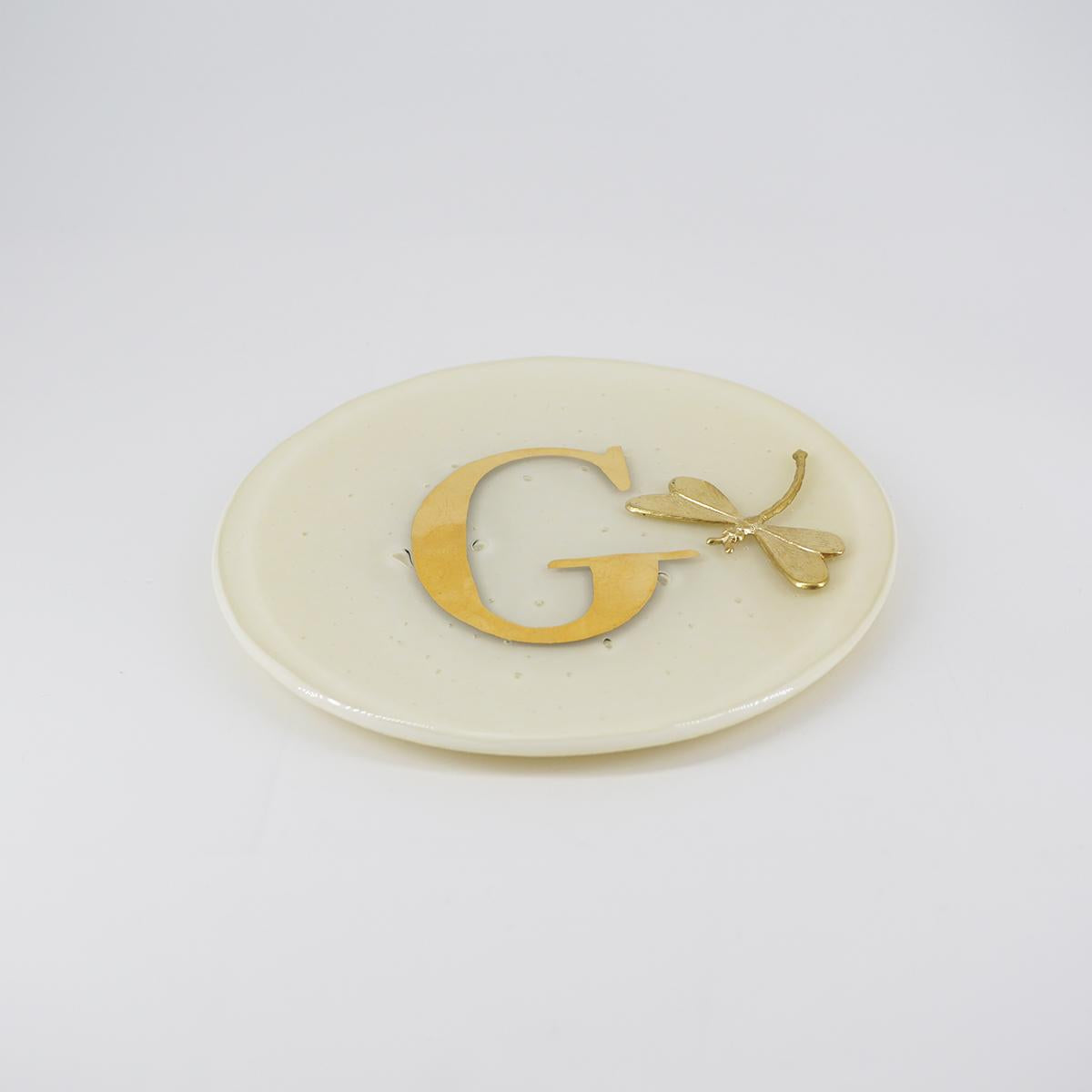 Eleganza e personalità in un piattino di vetro di Murano. Con l'iniziale in oro e l'applique in ottone, questi piattini sono un vero e proprio gioiello artigianale.