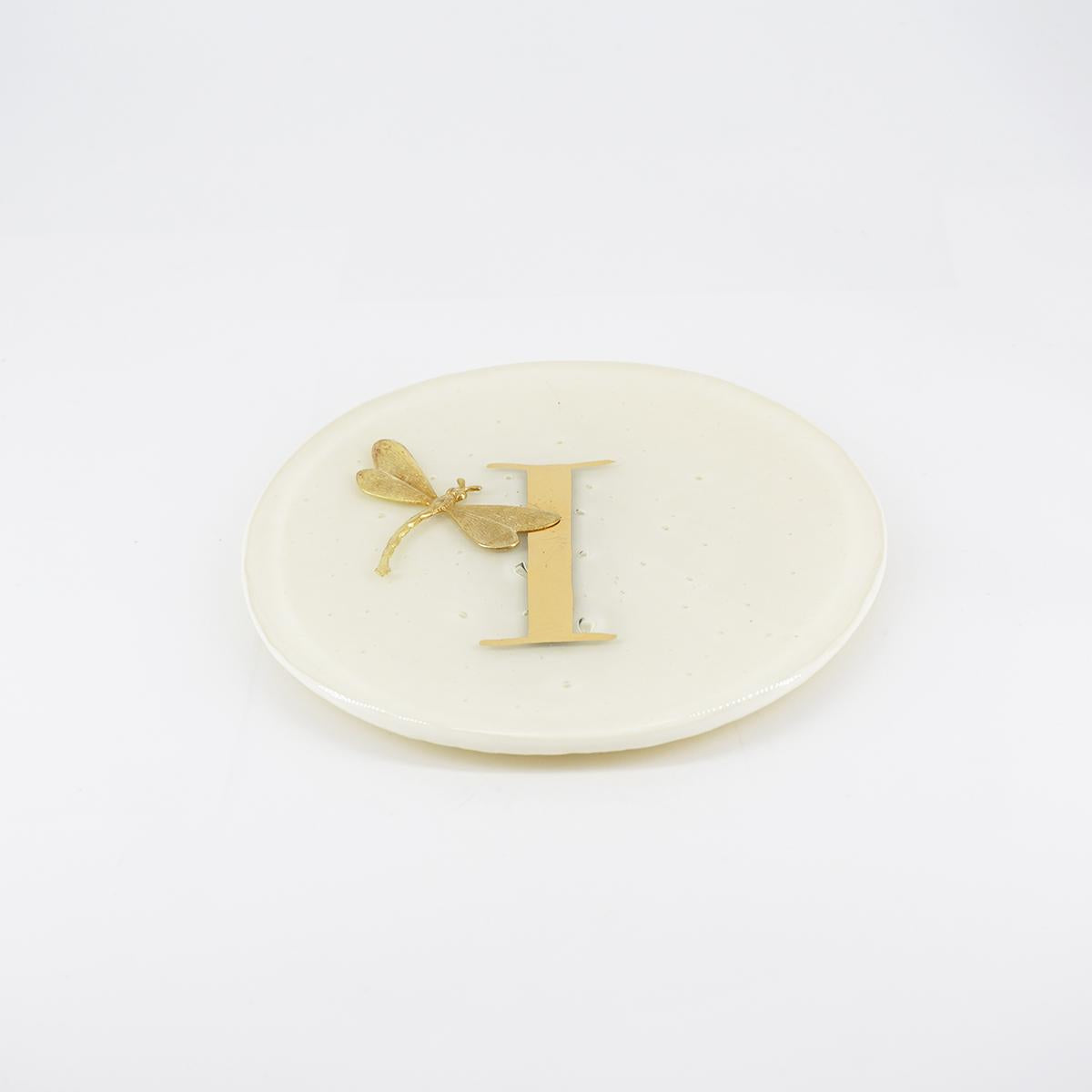 Piatto lettera e charm I AVORIO