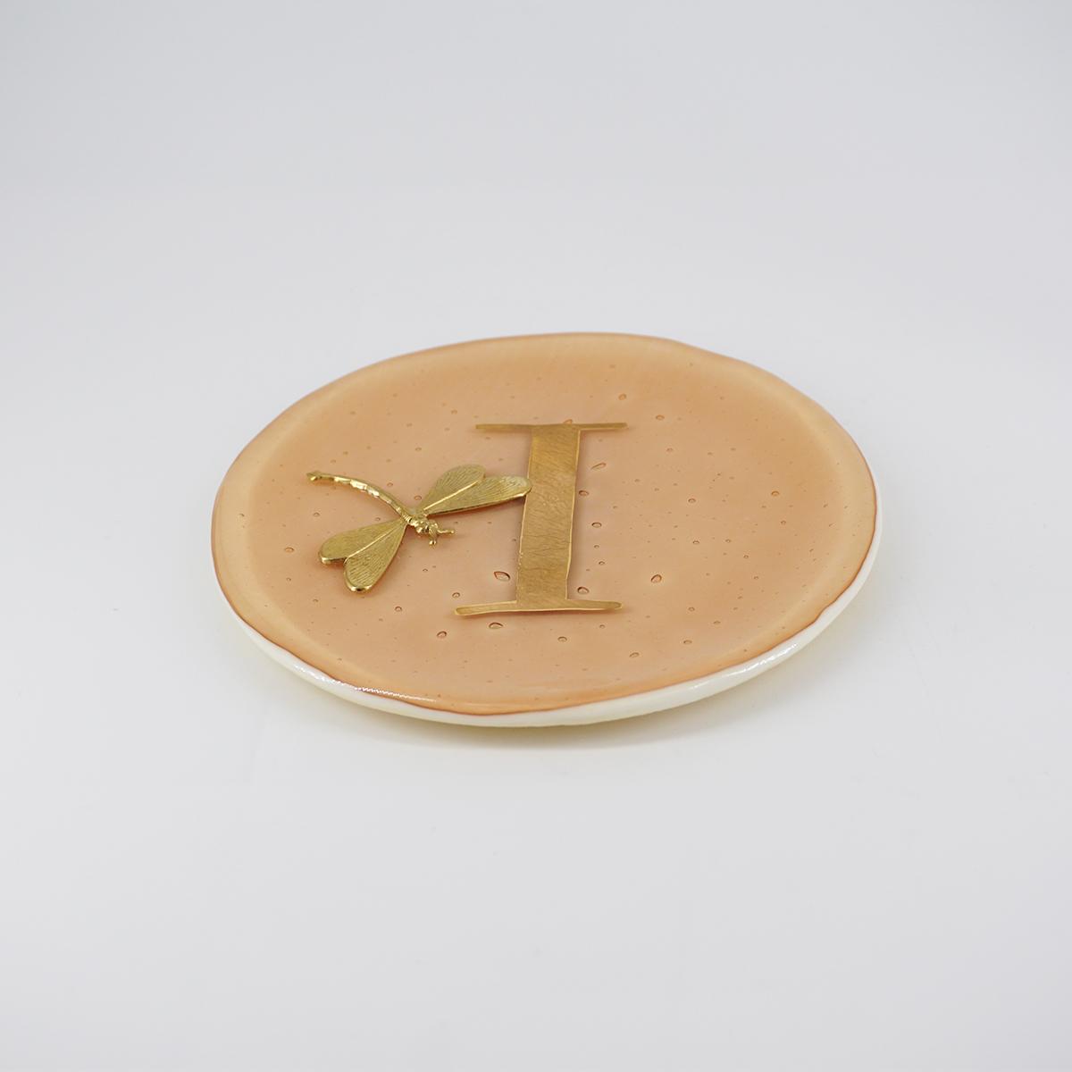 Eleganza e personalità in un piattino di vetro di Murano. Con l'iniziale in oro e l'applique in ottone, questi piattini sono un vero e proprio gioiello artigianale.