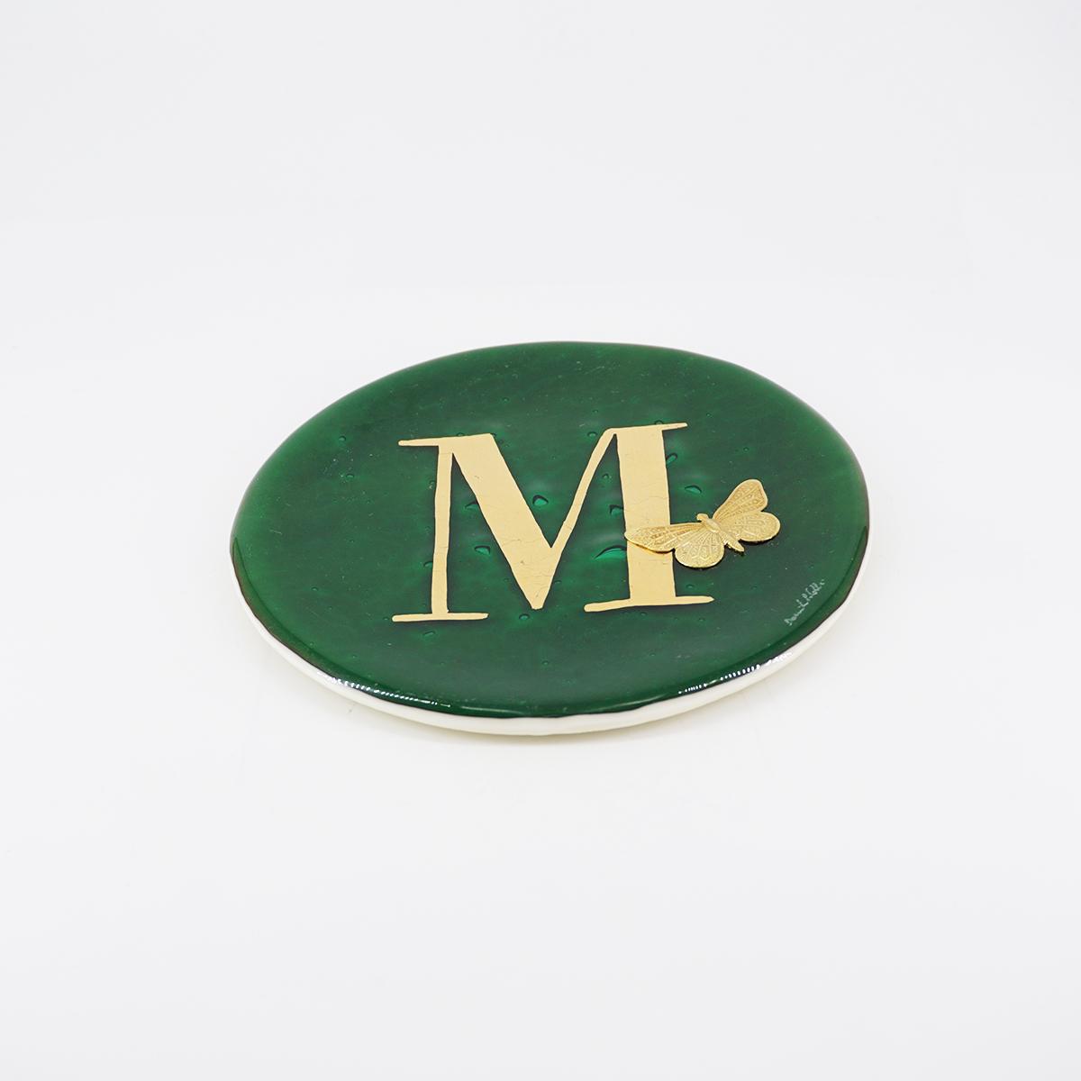 Eleganza e personalità in un piattino di vetro di Murano. Con l'iniziale in oro e l'applique in ottone, questi piattini sono un vero e proprio gioiello artigianale.