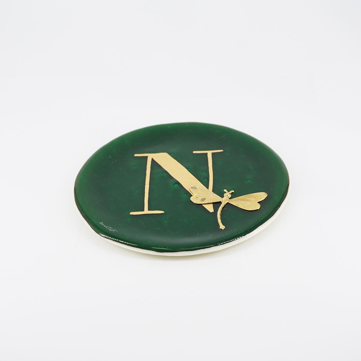 Piatto lettera e charm N GIADA
