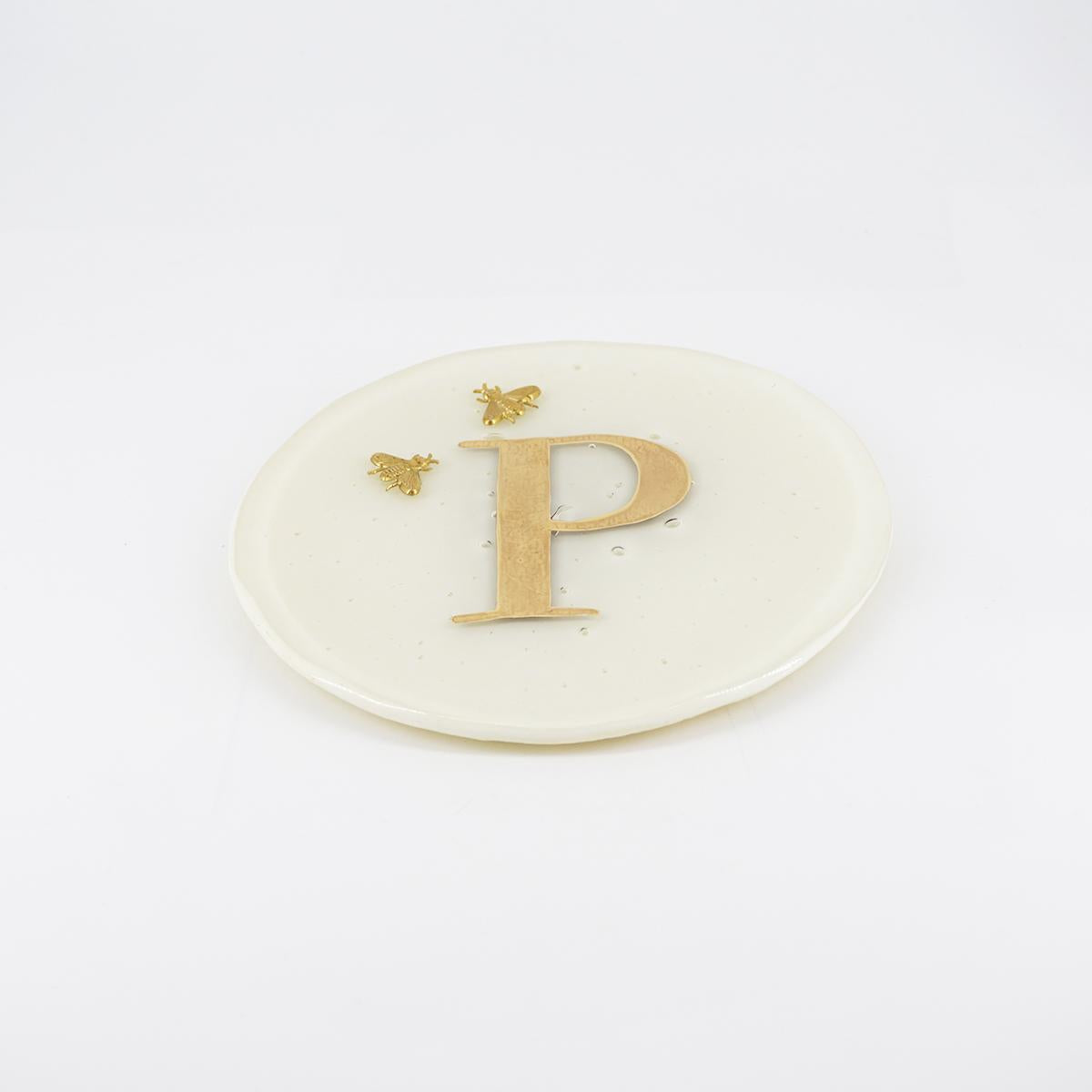 Eleganza e personalità in un piattino di vetro di Murano. Con l'iniziale in oro e l'applique in ottone, questi piattini sono un vero e proprio gioiello artigianale.