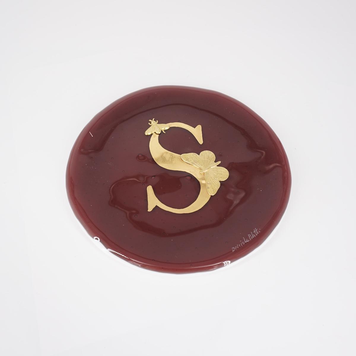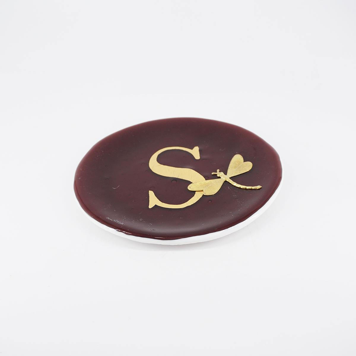 Eleganza e personalità in un piattino di vetro di Murano. Con l'iniziale in oro e l'applique in ottone, questi piattini sono un vero e proprio gioiello artigianale.