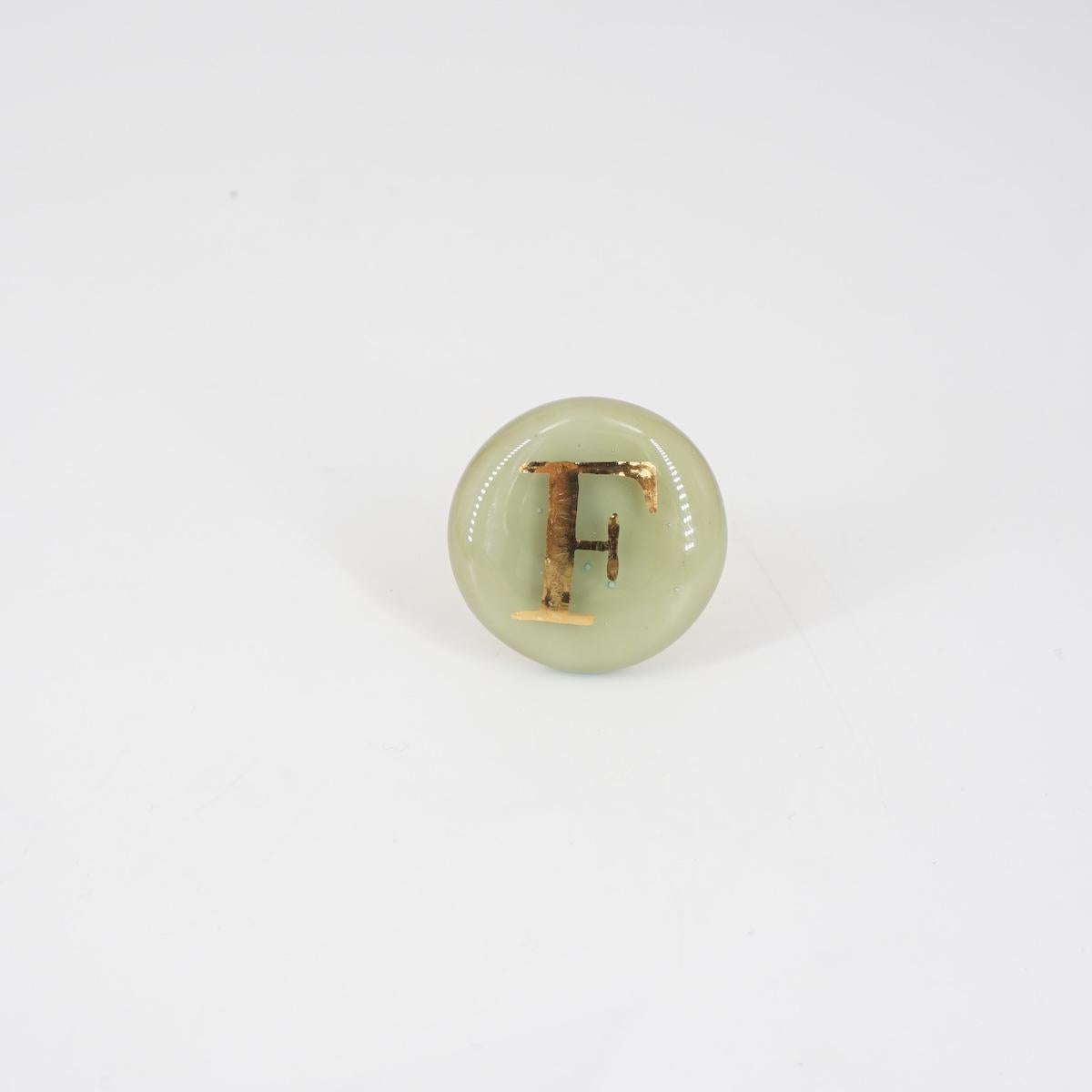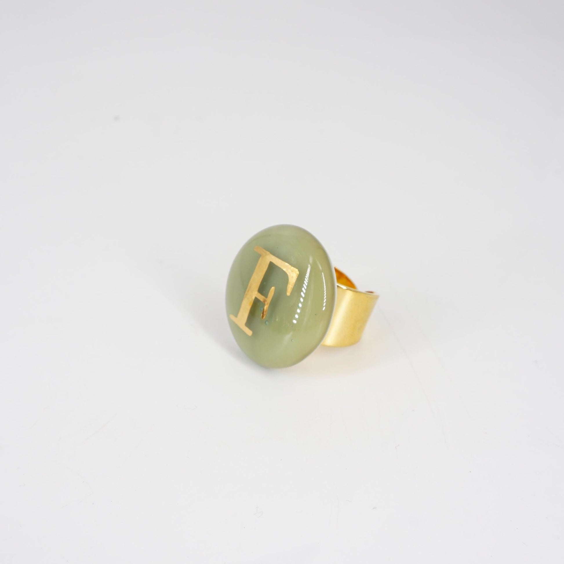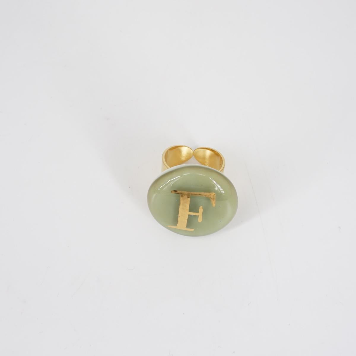Un anello in ottone e in vetro di Murano impreziosito da una lettera in oro. Un accessorio unico per la sua artigianalità e anche super stiloso. Perfetto per esprimere la propria iniziale o un messaggio speciale, aggiungendo un tocco di eleganza e originalità a ogni look.