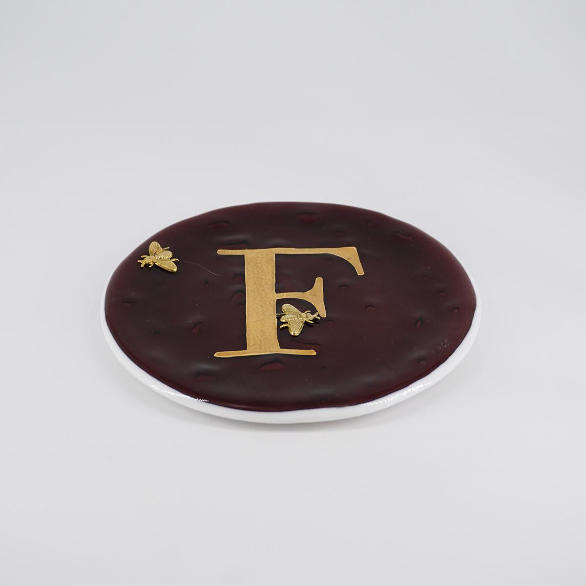Eleganza e personalità in un piattino di vetro di Murano. Con l'iniziale in oro e l'applique in ottone, questi piattini sono un vero e proprio gioiello artigianale.