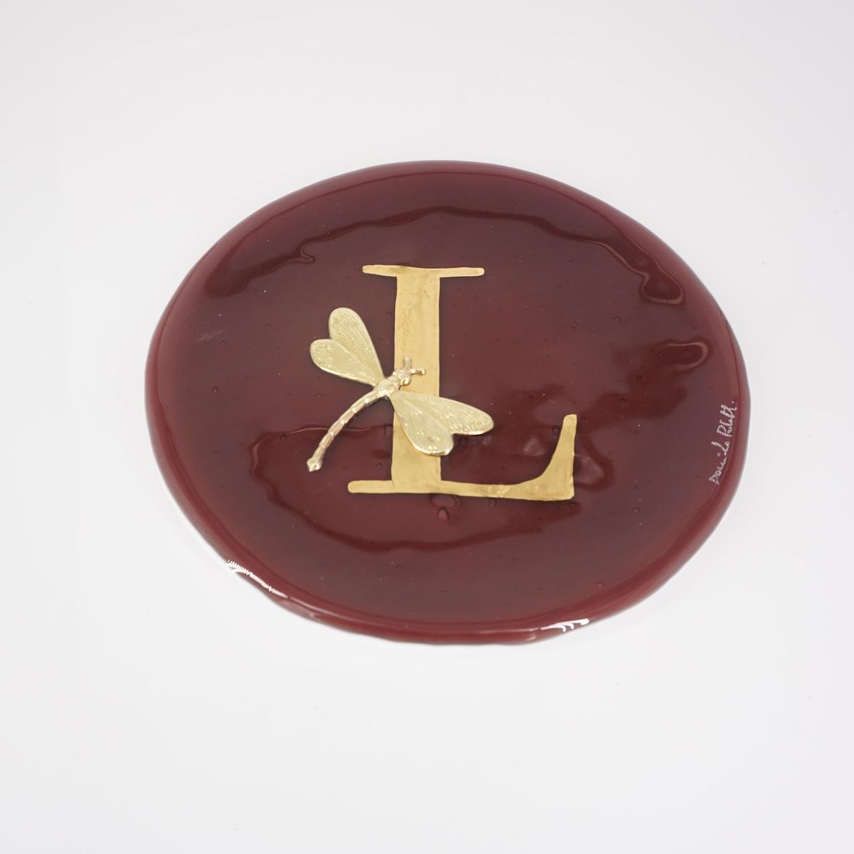 Eleganza e personalità in un piattino di vetro di Murano. Con l'iniziale in oro e l'applique in ottone, questi piattini sono un vero e proprio gioiello artigianale.