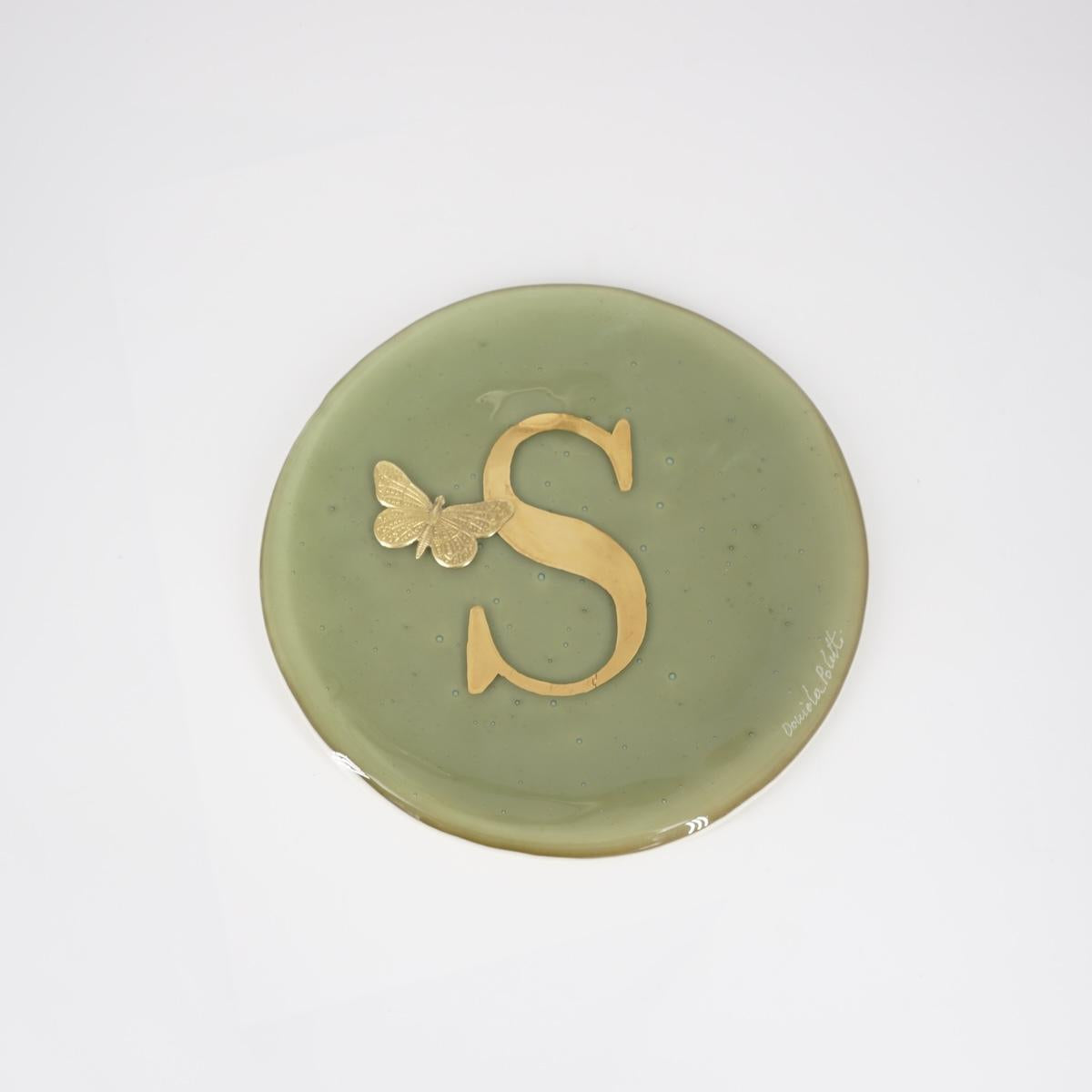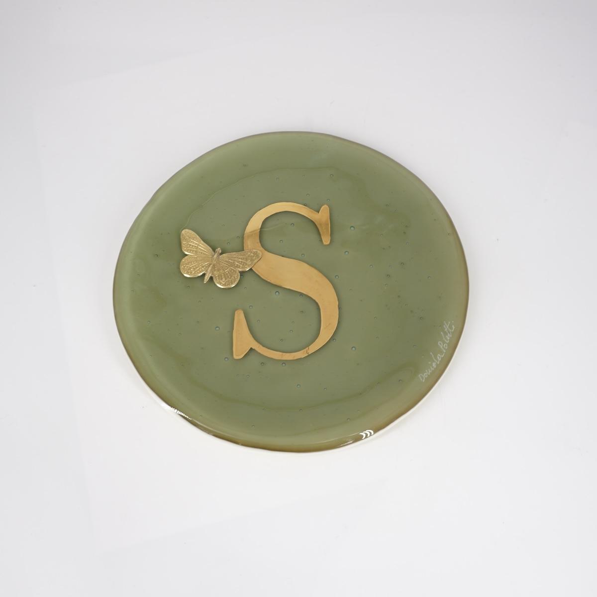 Eleganza e personalità in un piattino di vetro di Murano. Con l'iniziale in oro e l'applique in ottone, questi piattini sono un vero e proprio gioiello artigianale.